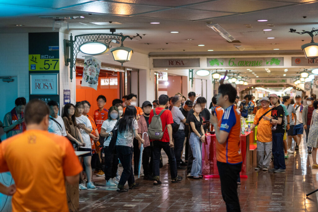西堀ローサでのパブリックビューイングは、地下街という快適な涼しさのロケーションで、家族や友人同士でのご来場が多く見られ、地上の暑さには負けないほどの熱い声援のとともに試合を楽しんでいただきました。